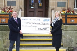 Kenny Dalrymple, from South Ayrshire Council’s Neighbourhood Services team handed over the cheque to Sandra McCall, Chief Executive of Ayrshire Cancer Support.