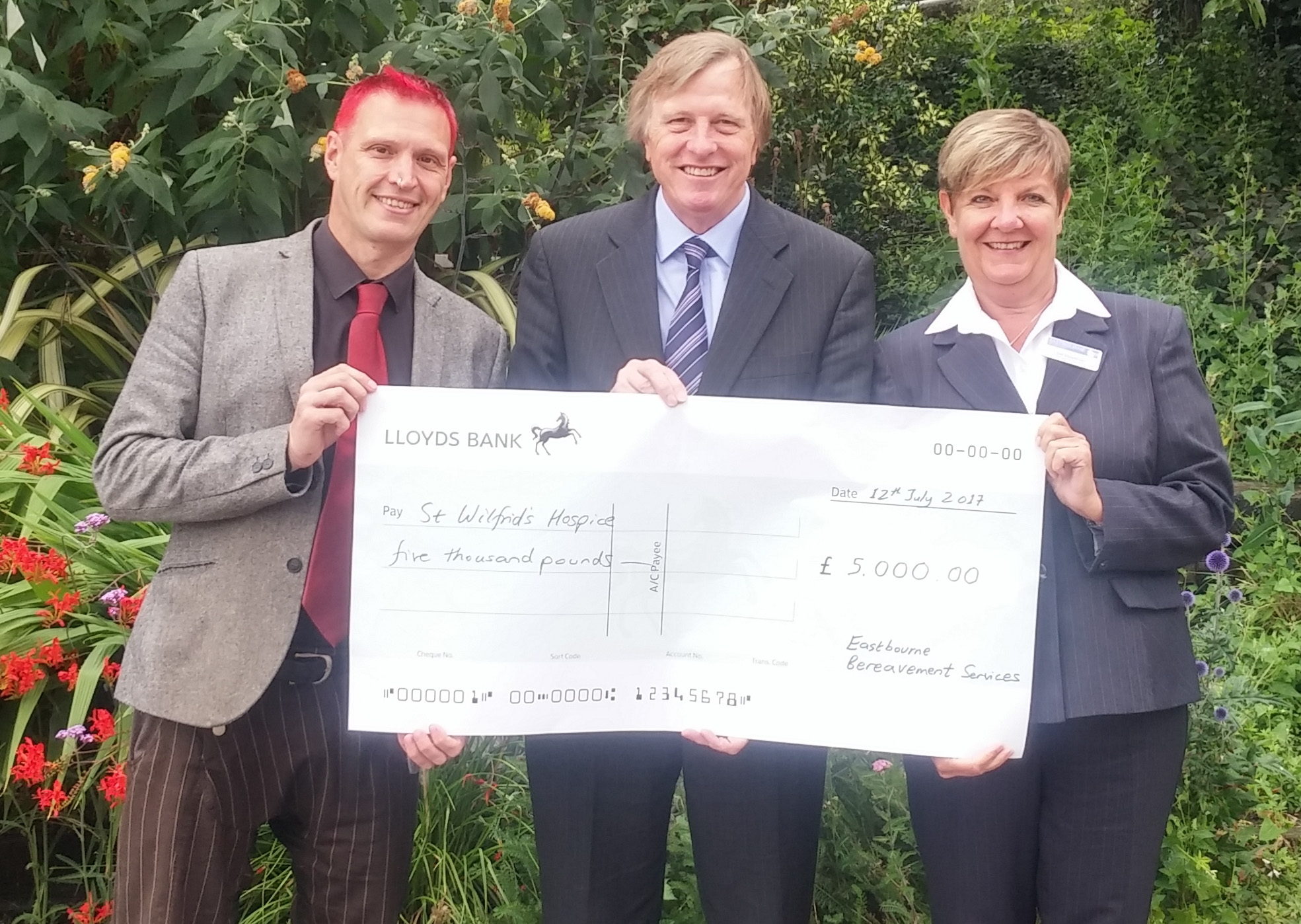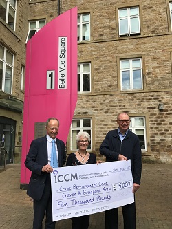 Paul Shevlin, Chief Executive of Craven District Council (Skipton Crematorium) presented a cheque for £5,000 to Sue Wainwright, Chair of Craven and Bradford Area of Cruse Bereavement Care. Also present was Treasurer, John Pope.