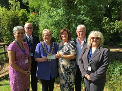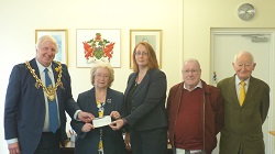 The Mayor of West Norfolk Council presents a cheque to the Survivors of Bereavement by Suicide (SOBS) Charity.