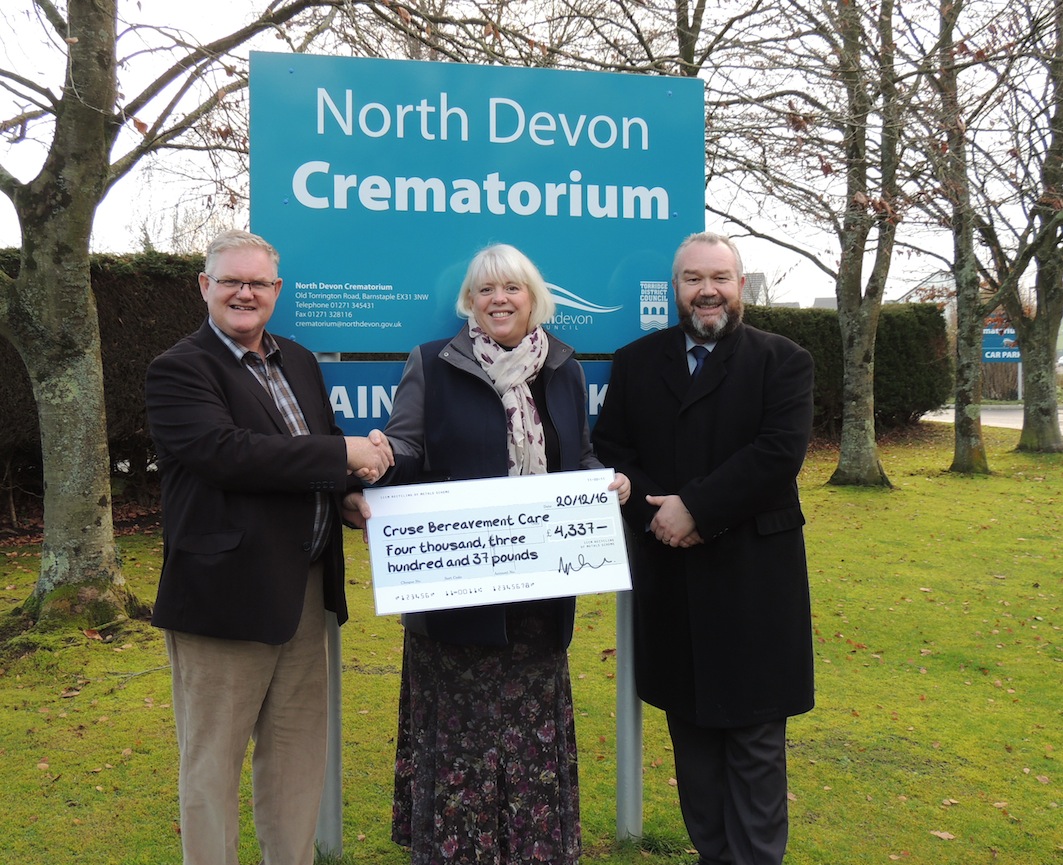 CRUSE receive a cheque from North Devon Crematorium