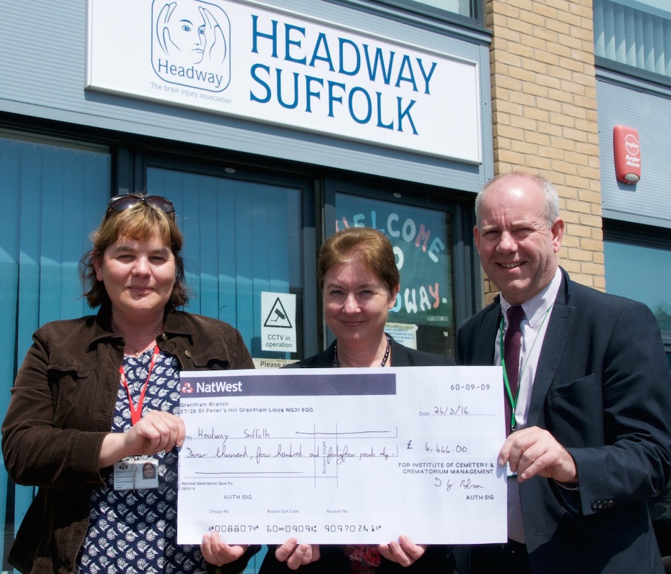 Headway Suffolk receives a cheque from Ipswich Crematorium