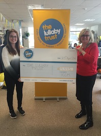 Hannah Pinchen and Francine Bates of the Lullaby Trust receive a cheque from Peterborough Crematorium