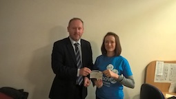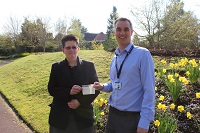 Dylan Jones (Core Fundraising Team), Peterborough presents a cheque to Andy Clark-Coates and Zoe