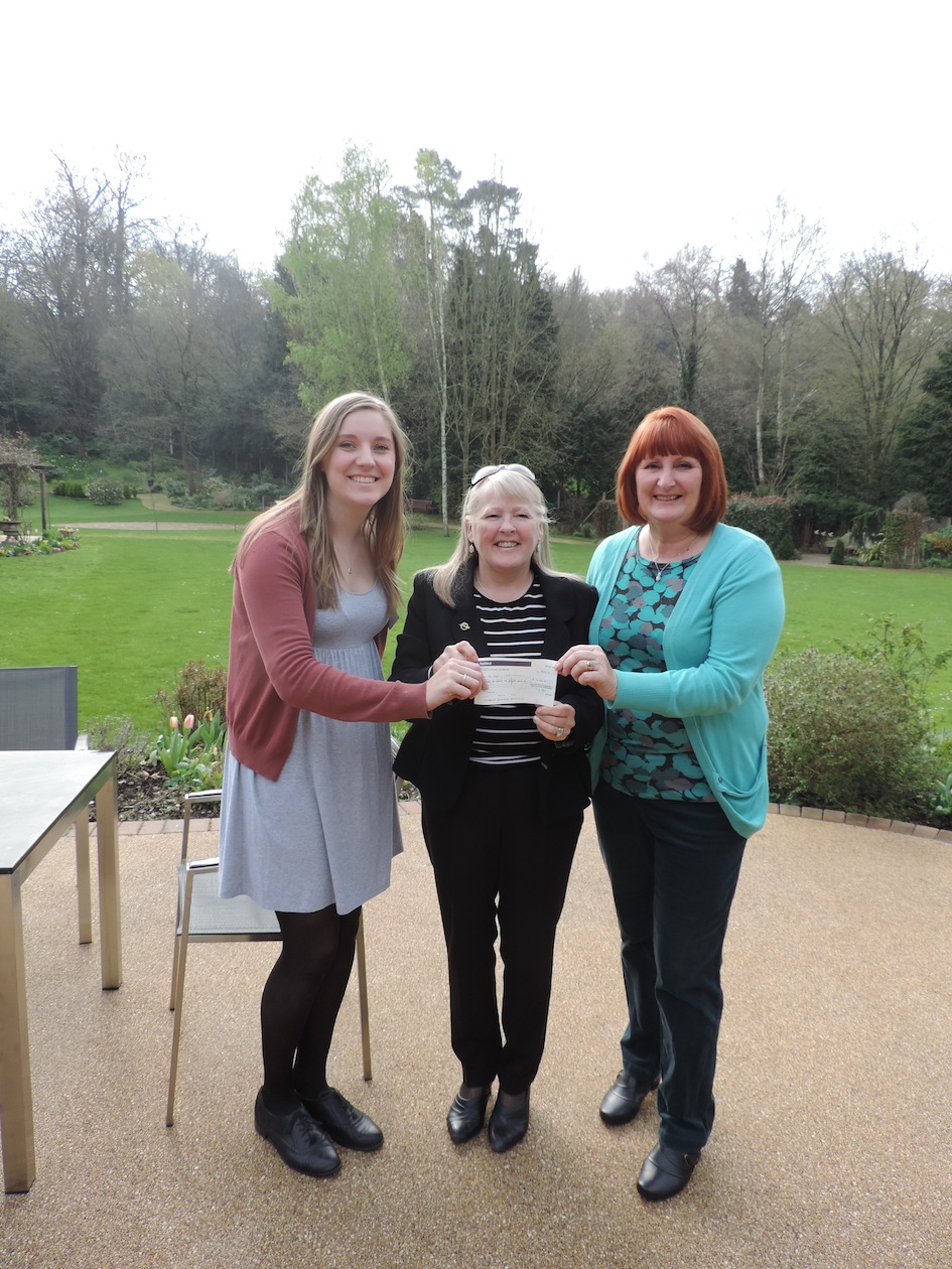 Teresa Kearney of South West Middlesex Crematorium presents a cheque to Emily East (L) and Susan Hanscombe(R); of the Princess Alice Hospice PRESS RELEASE – SW Middlesex Crematorium and Princess Alice Hospice