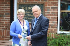 Peter Foxton of Phyllis Tuckwell Hospice care received a cheque from Kelly Chambers of Aldershot Crematorium