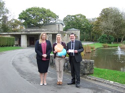 Pictured left to right, Joanna Hamilton, the Bereavement Services Manager and Registrar for Bridgend County Borough Council and Coychurch Crematorium Joint Committee, Rebecca Chick, Corporate Partnership Manager for Ty Hafan and Cllr Eric Hacker (Vale of Glamorgan Council), Chairman of the Coychurch Crematorium Joint Committee. The charity money will help to provide care and support to life-limited children and their families.